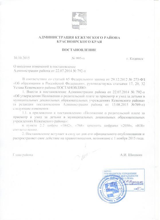 Постановление по род плате изм. в №792-п от 22.07.2014
